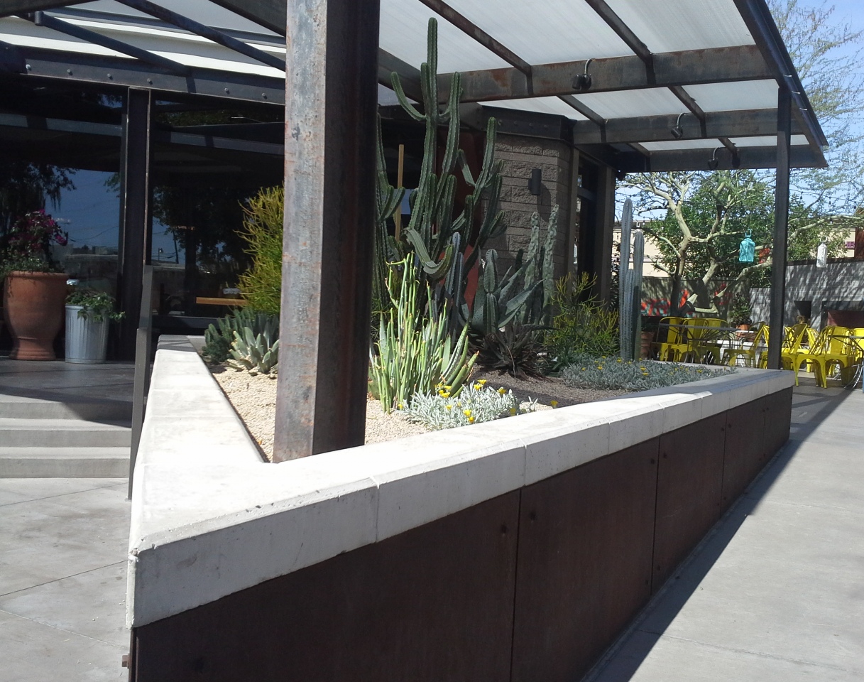 The special technology and experience of Mesa Precast, allows customers to match colors of planters with other architectural elements in the design such as wall caps, pool coping, columns, wainscots, fountain heads …etc.